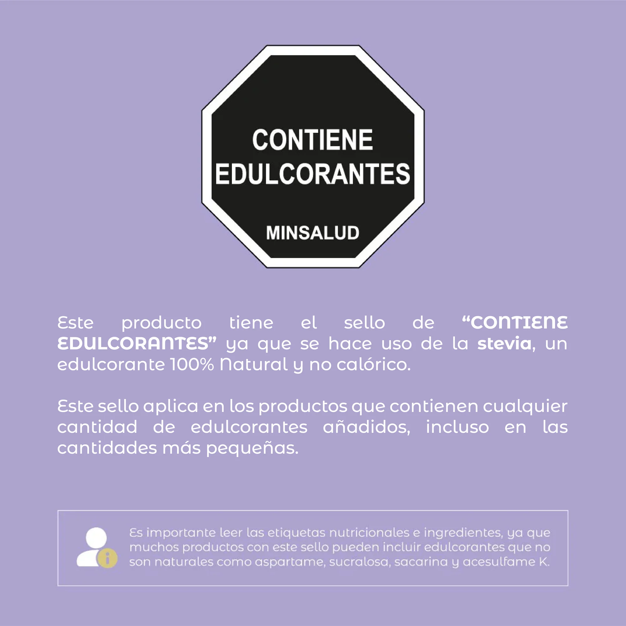 •Sin azúcar (endulzado con Stevia 100% natural).