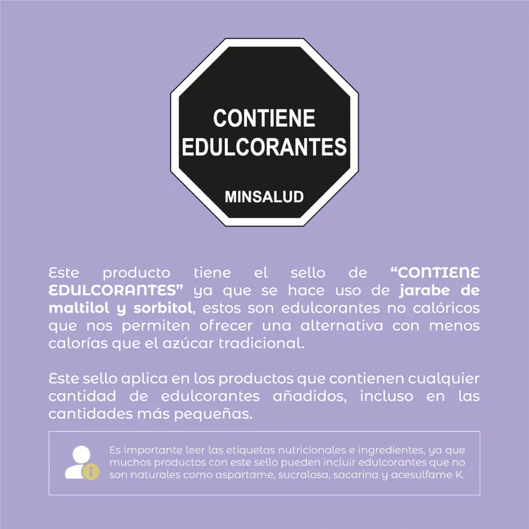 •Sin azúcar (endulzadas con maltitol y sorbitol).